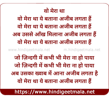 Lyrics of Woh Mera Tha Ye - वो मेरा था