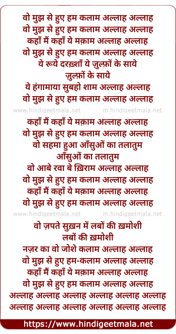 Lyrics of Woh Mujhse Hue Hum Qalam - वो मुझसे हुए हम कलाम