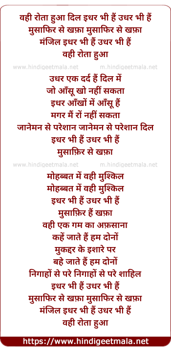 Lyrics of Wohi Rota Hua Dil Idhar Bhi Hai Udhar Bhi Hai - वही रोता हुआ दिल इधर भी हैं उधर भी हैं