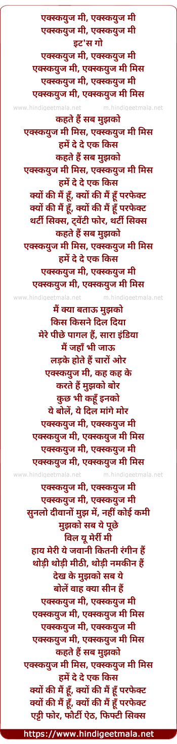 Poetic Translation - Lyrics of Xcuse Me (Title Song) - एक्स्कयुज मी, एक्स्कयुज मी