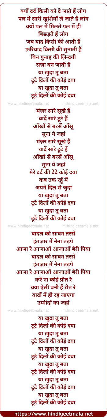Lyrics of Ya Khuda - क्यों दर्द किसी को दे जाते हैं लोग