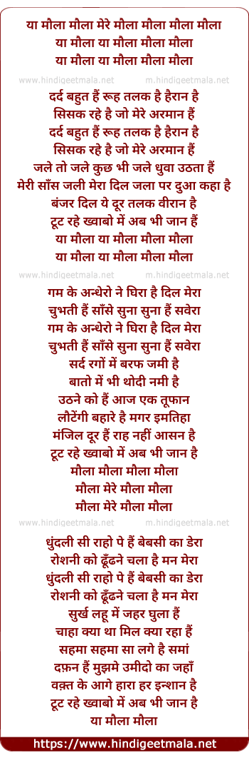 Lyrics of Yaa Maula Dard Bhut Hai Ruh Talak Hairan Hai - या मौला दर्द बहुत है रूह तलक हैरान है
