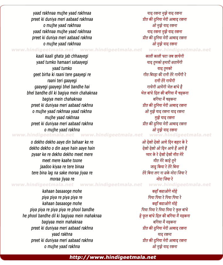 preet ki duniyaa meri aabaad rakhna