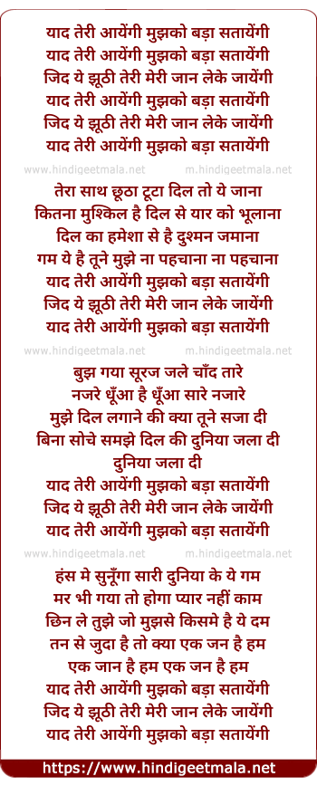 Poetic Translation - Lyrics of Yaad Teri Aayegi (Sad)