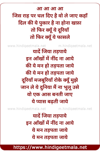 Poetic Translation - Lyrics of Yaade - आ आ आ आ