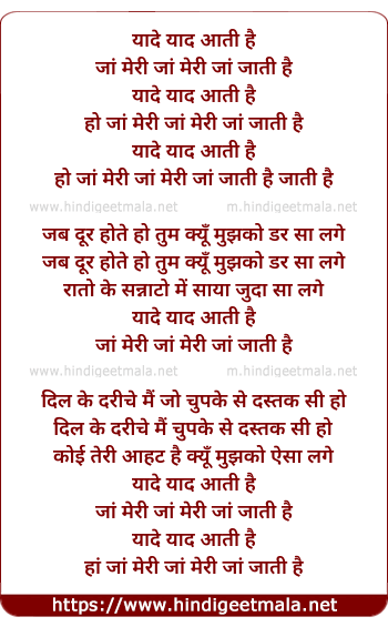Lyrics of Yaadein Yaad Aati Hain - यादे याद आती है
