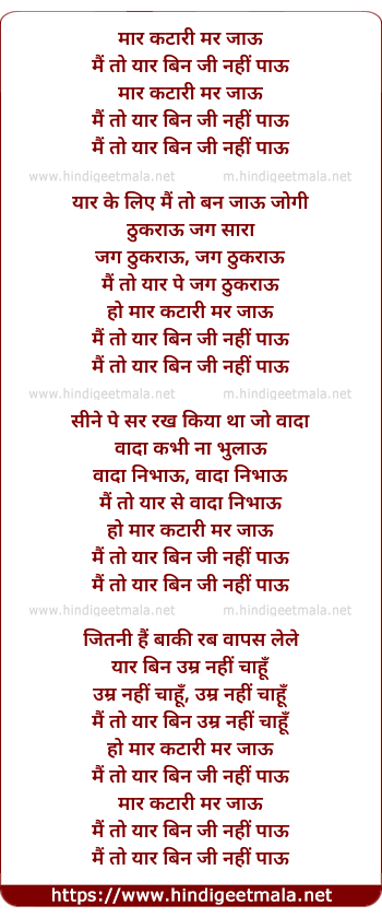 main to yaar bin jee nahi paau