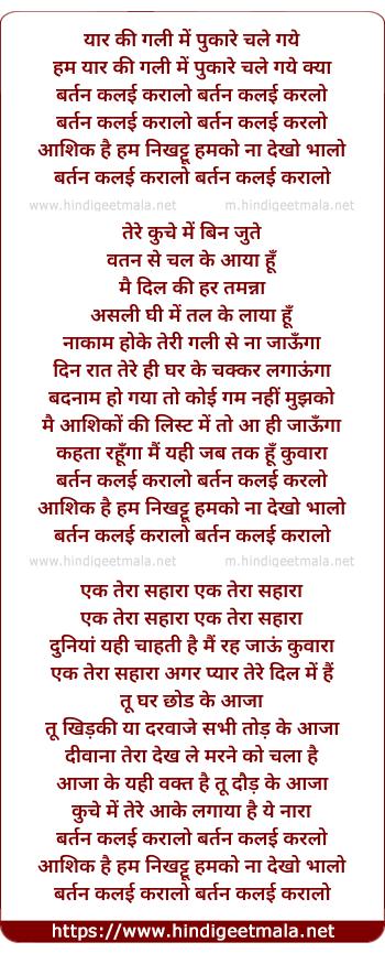 Lyrics of Yaar Ki Gali Me Pukare Chale Gaye - यार की गली में पुकारे चले गये