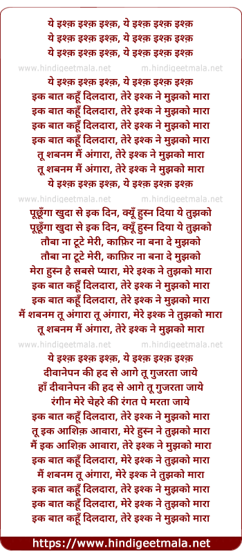 ik baat kahu dildaara, mere ishq ne tujhako maara