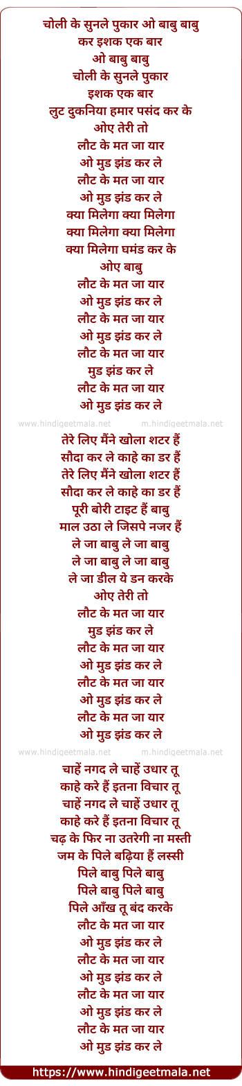 Lyrics of Yaar Mud Jhand Kar Ke - यार मुड झंड कर के