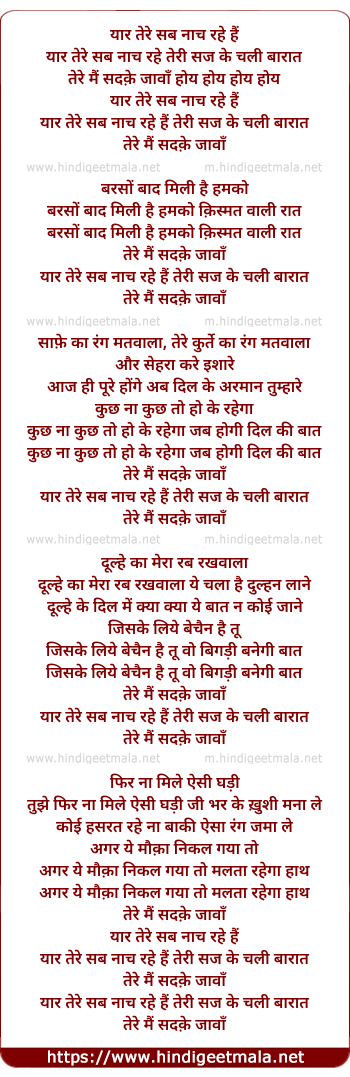 Lyrics of Yaar Tere Sab Naach Rahe Hai - यार तेरे सब नाच रहे हैं