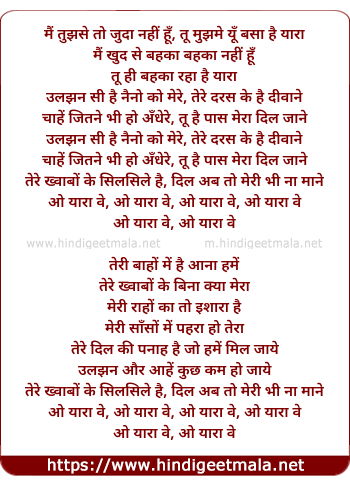 main tujhse juda to nahi hu, tu mujhme yu basa hai yaara