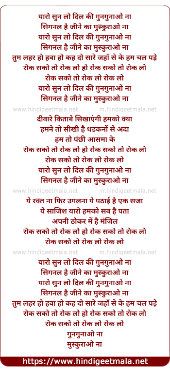 Lyrics of Yaaro Sun Lo Dil Kee Gungunaao Naa - यारो सुन लो दिल की गुनगुनाओ ना