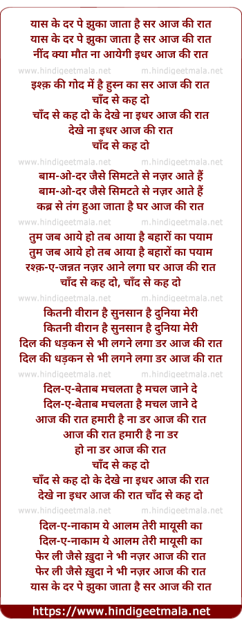 Lyrics of Yaas Ke Dar Pe Jhukaa Jaataa Hai Sar Aaj Ki Raat - यास के दर पे झुका जाता है सर आज की रात