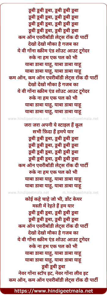 Lyrics of Yaba Daba Yahoo - याबा डाबा याहू