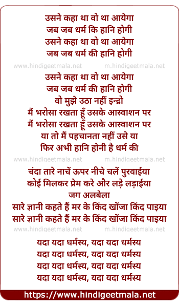 Lyrics of Yadaa Yada Hi Dharmsya - उसने कहा था वो था आयेगा