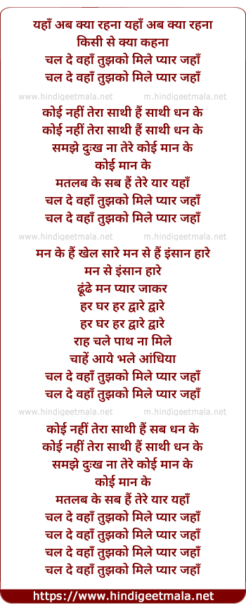 Lyrics of Yaha Ab Kya Rehna, Kisi Se Kya Kehna - यहाँ अब क्या रहना, किसी से क्या कहना