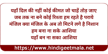 Lyrics of Yaha Dil Ki Nahi Koyi Keemat (Slow) - यहाँ दिल की नहीं कोई कीमत जो चाहें तोड़ जाए