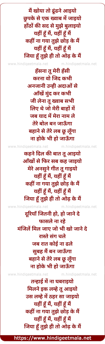 Lyrics of Yahi Hu Mai - मैं खोया तो ढूंढने आइयो