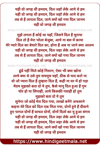 Lyrics of Yahi Woh Jagah Thi Hamdam - यही वो जगह थी हमदम