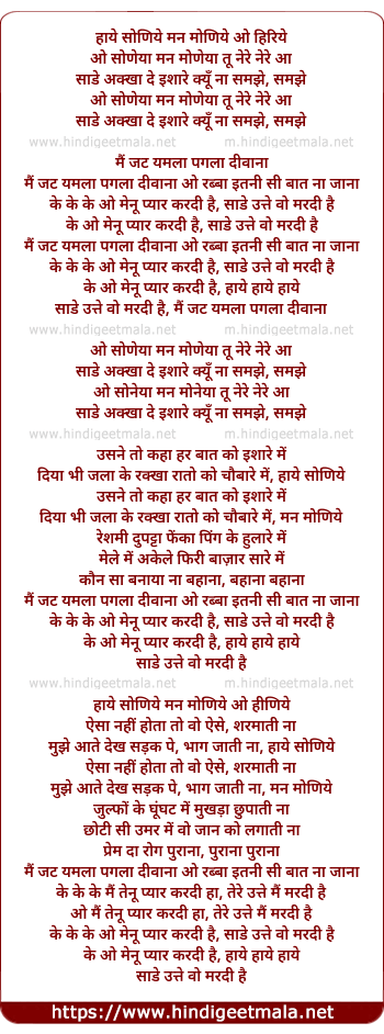 sade utte wo mardi hai, main jatt yamla pagla diwana