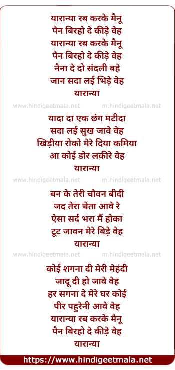 Lyrics of Yariya Rab Karke - यारान्या रब करके मैनू