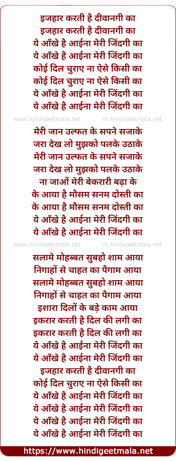 Lyrics of Ye Aankhe Hai Aaina Meri Jindagi Ka - ये आँखे है आईना मेरी जिंदगी का