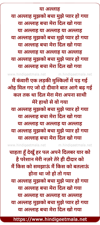 Lyrics of Ya Allah Mujhko Bacha - या अल्लाह मुझको बचा