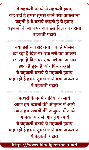 Lyrics of Ye Bahakti Ghataye - ये बहकती घटाये