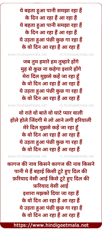 Lyrics of Ye Behta Hua Pani Samjha Raha Hai - ये बहता हुआ पानी समझा रहा हैं