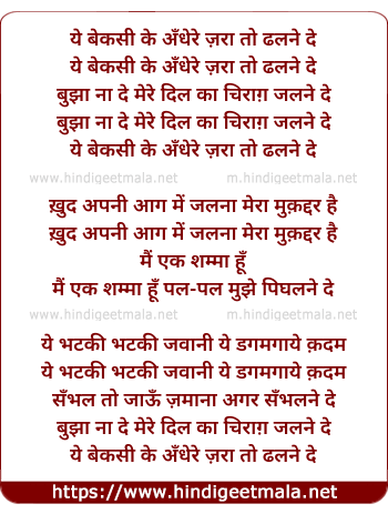 Lyrics of Ye Bekasi Ke Andhere - ये बेकसी के अँधेरे
