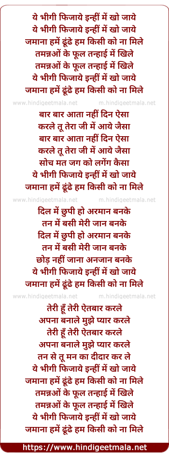 Lyrics of Ye Bhigi Fizaye Inhi Me Kho Jaye - ये भीगी फिजाये इन्हीं में खो जाये