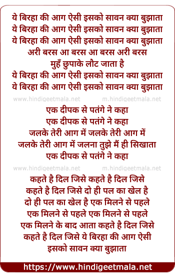 Lyrics of Ye Birha Ki Aag Aisi - ये बिरहा की आग ऐसी