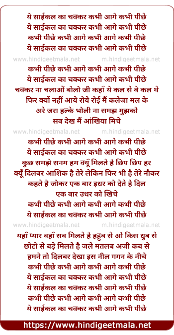 Lyrics of Ye Cycle Ka Chakkar Kabhi Aage Kabhi Pichhe - ये साईकल का चक्कर कभी आगे कभी पीछे