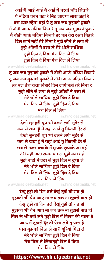 mera dil le liya tujhe dil de diya