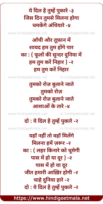 Lyrics of Ye Dil Hai Tumhe Pukare - ये दिल है तुम्हें पुकारे -३