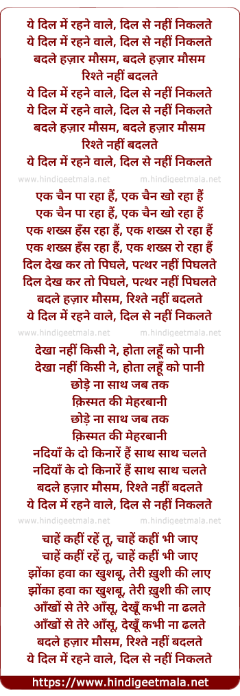 Lyrics of Ye Dil Me Rahnewale - ये दिल में रहनेवाले
