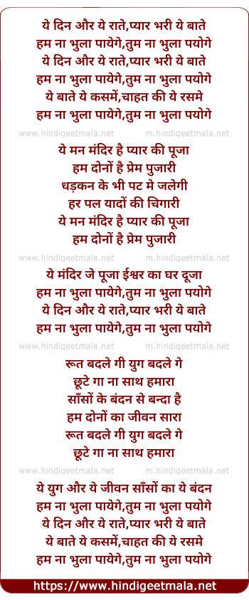 Lyrics of Ye Din Aur Ye Raate - ये दिन और ये राते