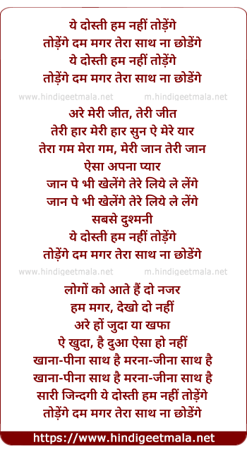 Poetic Translation - Lyrics of Ye Dosti - ये दोस्ती