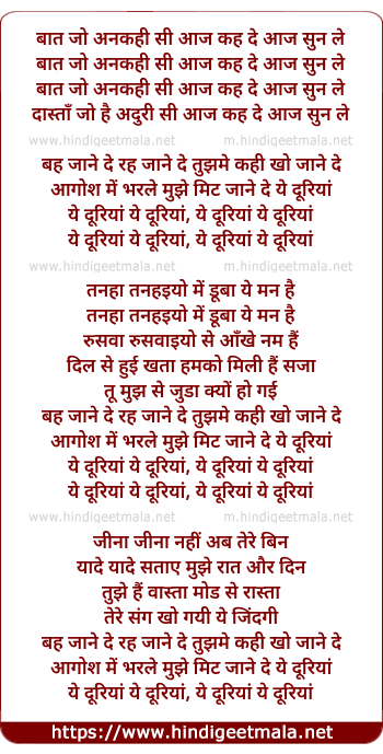Lyrics of Ye Duriya Omer Nadeem (Remix) - बात जो अनकही सी आज कह दे आज सुन ले