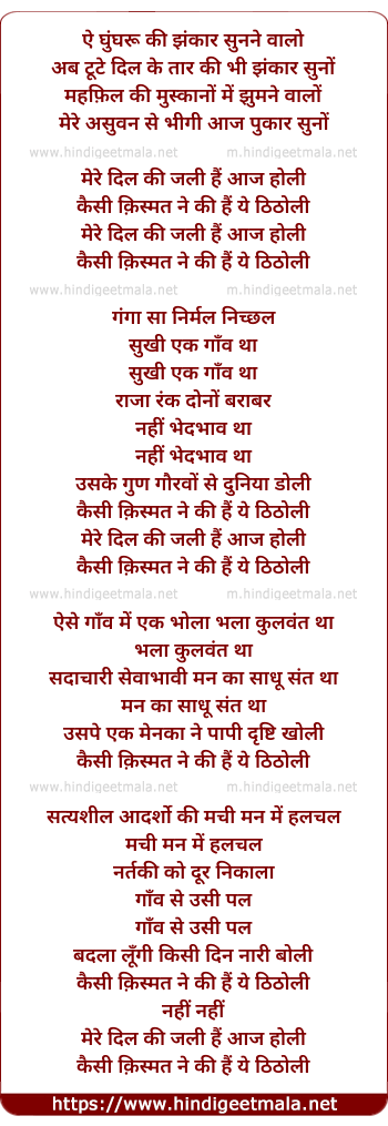 Lyrics of Ye Ghunghru Ki Jhankar - ऐ घुंघरू की झंकार
