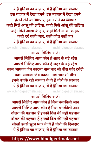 Lyrics of Ye Hai Duniya Ka Bazaar - ये हैं दुनिया का बाज़ार