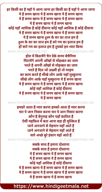 Lyrics of Ye Hai Sanam Khana - ये हैं सनम खाना