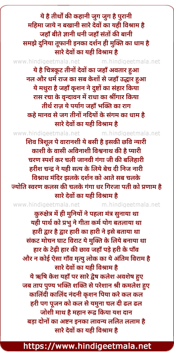Lyrics of Ye Hai Tirtho Ki Kahani - ये है तीर्थों की कहानी