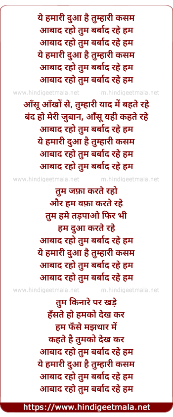 Lyrics of Ye Hamari Dua Hai - ये हमारी दुआ है