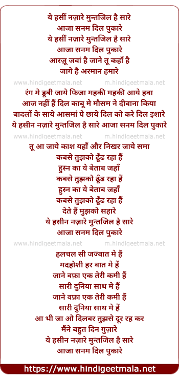 Lyrics of Ye Hasin Nazare Muntzil Hai Sare - ये हसीं नज़ारे मुन्तजिल है सारे