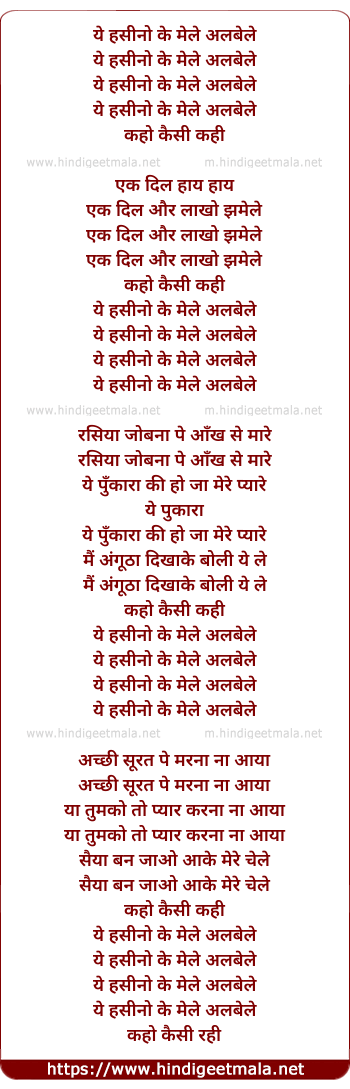 Lyrics of Ye Hasino Ke Mele Albele - ये हसीनो के मेले अलबेले