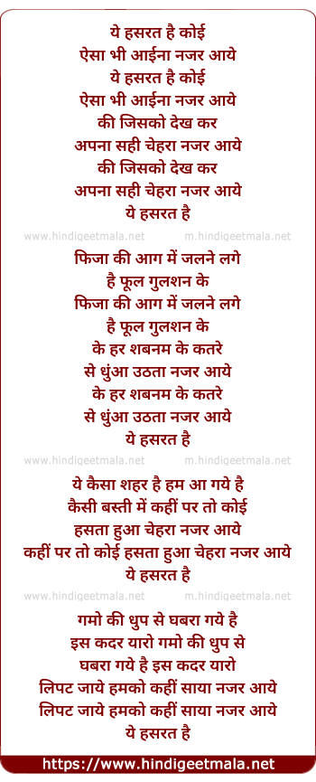 Lyrics of Ye Hasrat Hai Koi