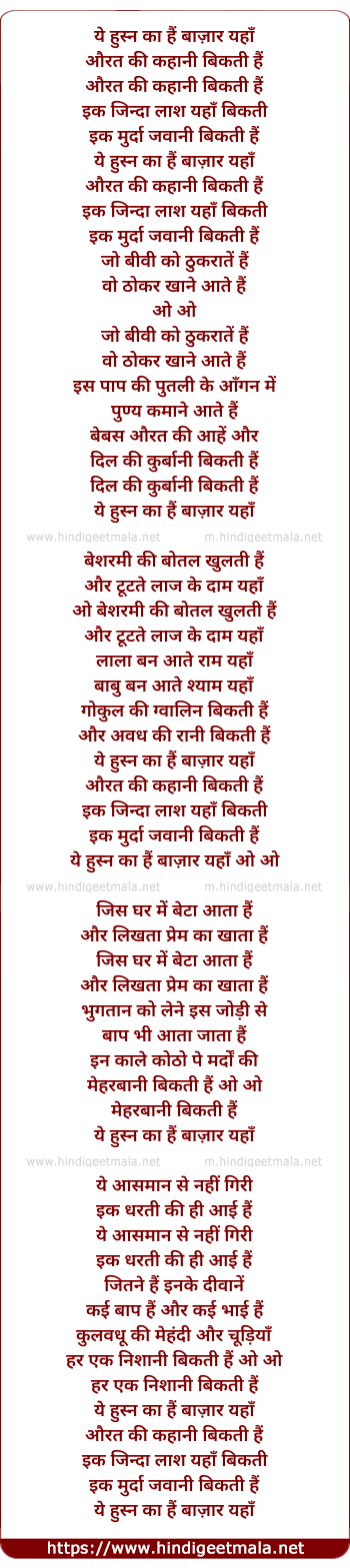 Lyrics of Ye Husn Ka Hai Baazaar - ये हुस्न का हैं बाज़ार
