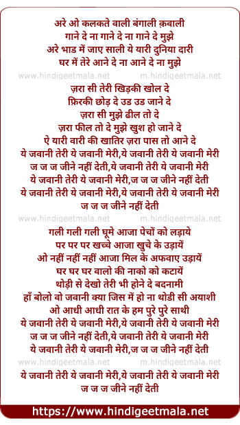 Lyrics of Ye Jawani Teri Ye Jawani Meri - ये जवानी तेरी ये जवानी मेरी